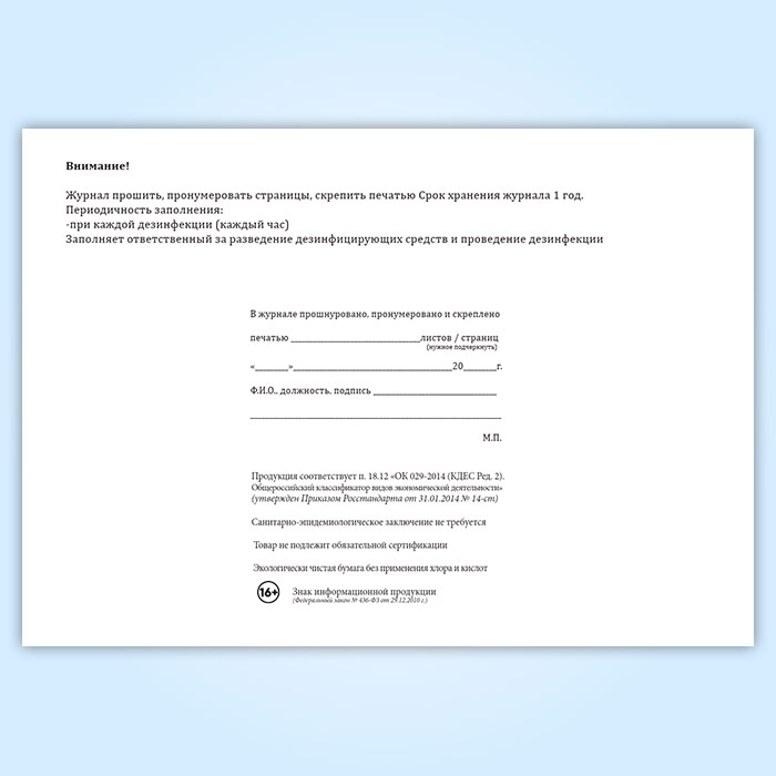 Журнал учета дезинфекций поверхностей в рамках профилактики распространения коронавирусной инфекции COVID-19 в Обнинске купить