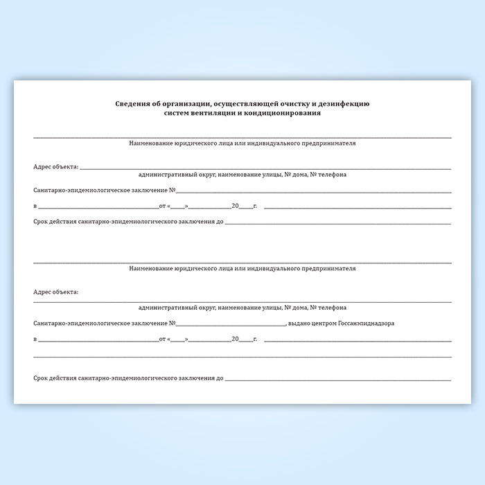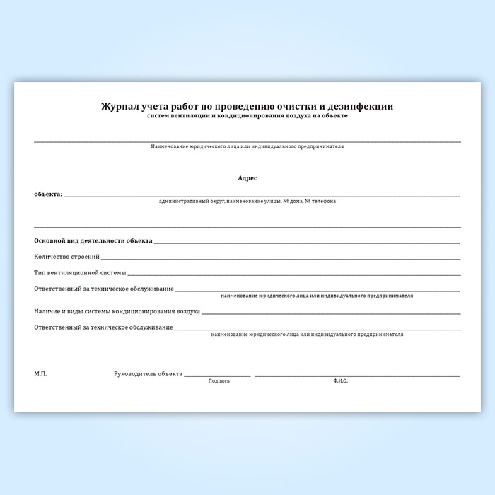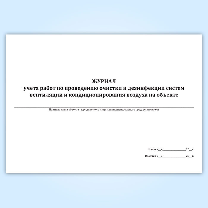 Журнал учета работ по проведению очистки и дезинфекции систем вентиляции и кондиционирования воздуха на объекте в Обнинске купить