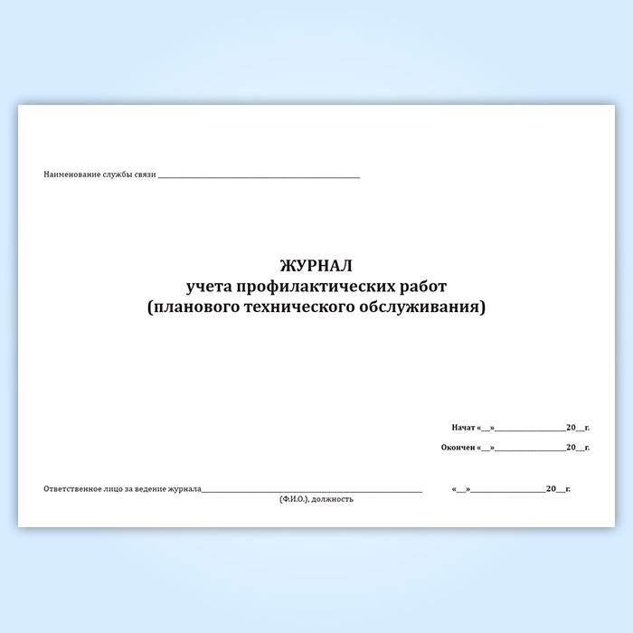 Журнал учета профилактических работ (планового технического обслуживания) в Обнинске купить