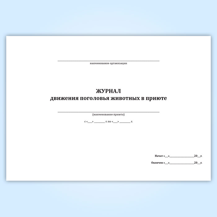 Журнал движения поголовья животных в приюте в Обнинске купить