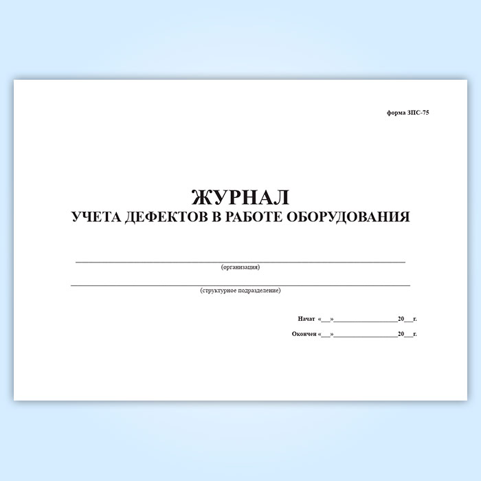 Журнал учета дефектов в работе оборудования (форма ЗПС-75) в Обнинске купить