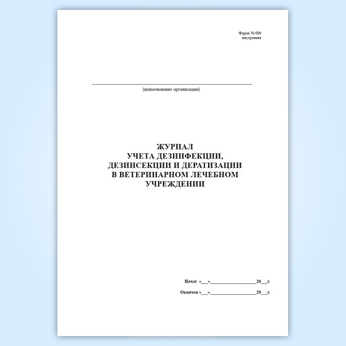 Журнал учета дезинфекции ветеринарного лечебного подразделения (форма № 006 вн.) в Обнинске купить