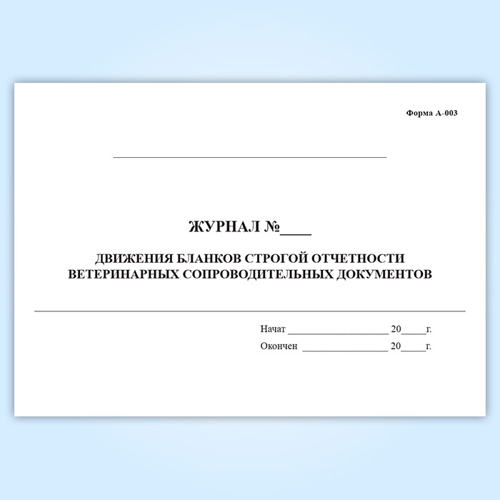 Журнал движения бланков строгой отчетности ветеринарных сопроводительных документов (форма А-003) в Обнинске купить
