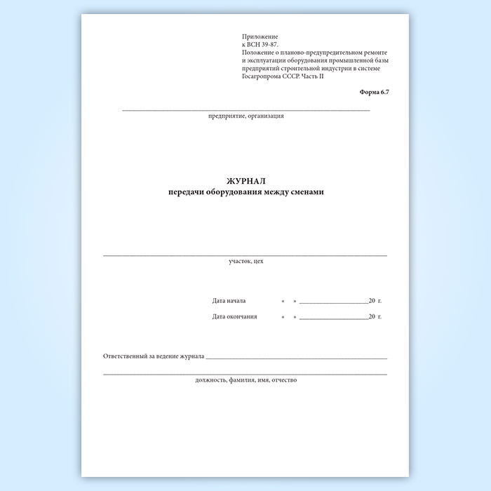 Журнал передачи оборудования между сменами в Обнинске купить