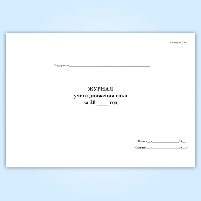 Журнал учета движения сока (форма № П-6п) в Обнинске купить