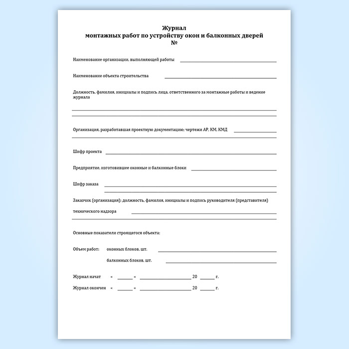 Журнал монтажных работ по устройству окон и балконных дверей в Обнинске купить