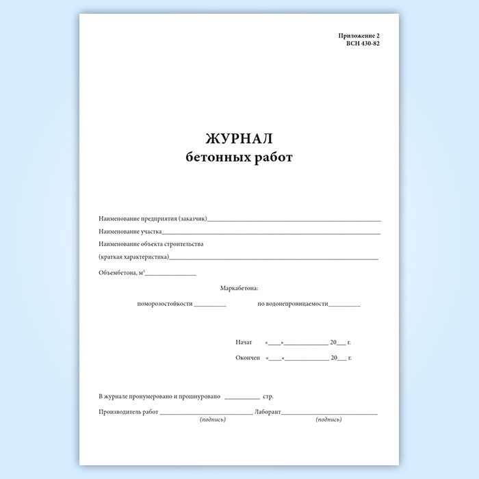 Журнал бетонных работ (ВСН 430-82) в Обнинске купить