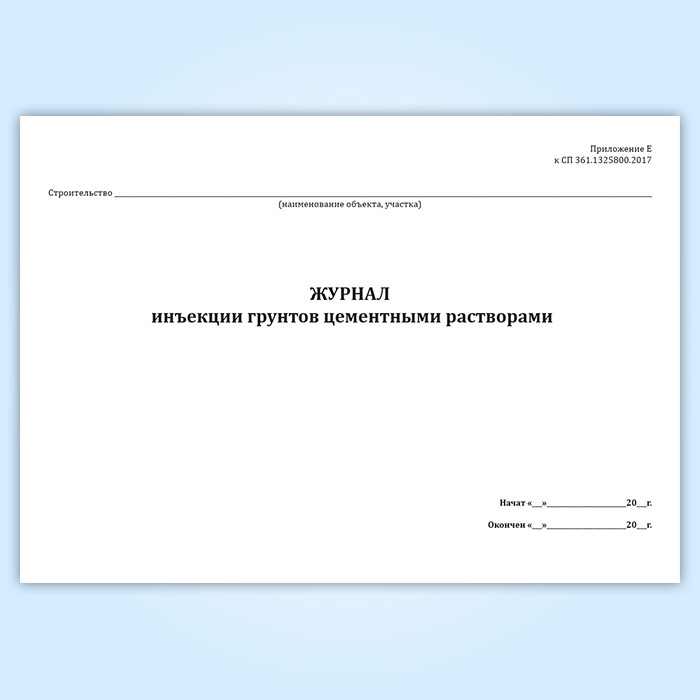 Журнал инъекции грунтов цементными растворами (СП 361.1325800.2017) в Обнинске купить