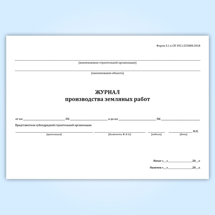 Журнал производства земляных работ (форма 5.1) в Обнинске купить
