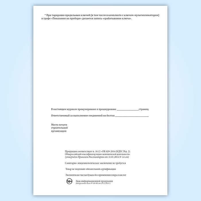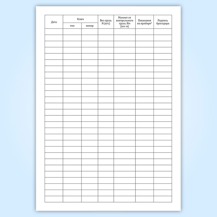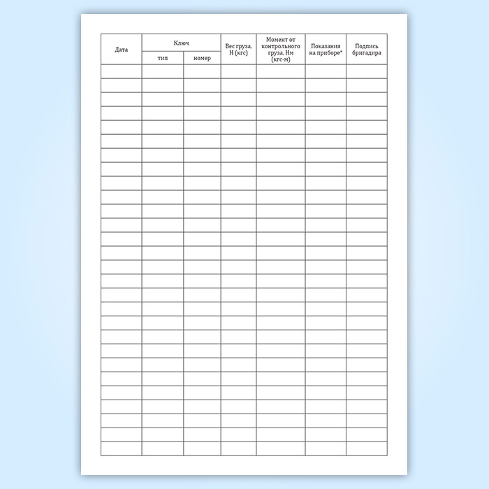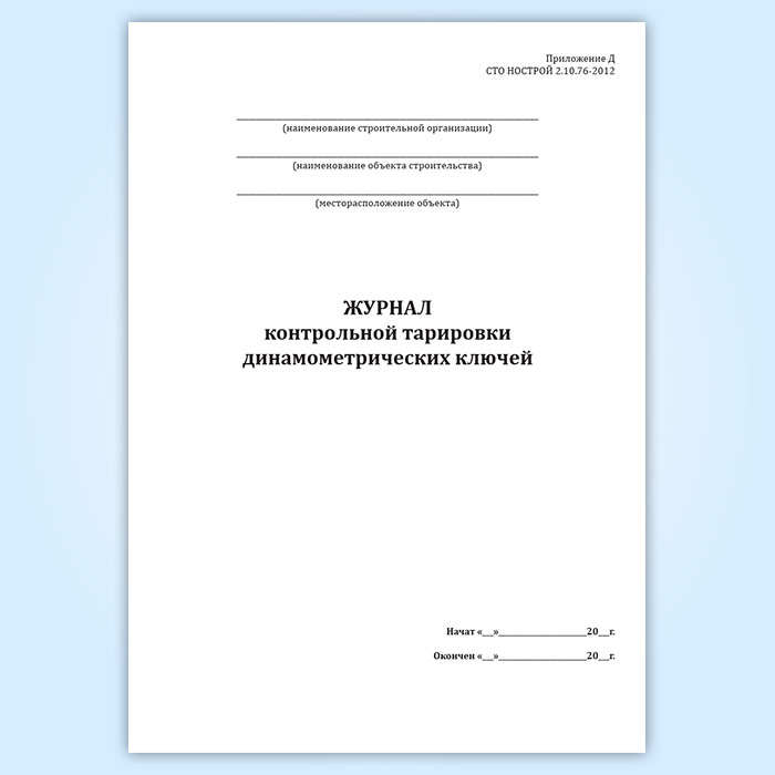 Журнал контрольной тарировки динамометрических ключей (СТО НОСТРОЙ 2.10.76-2012) в Обнинске купить