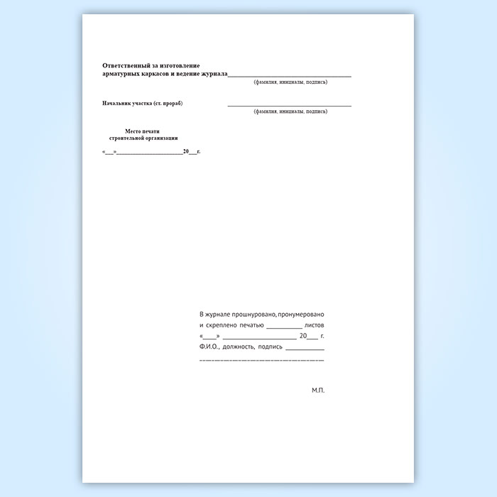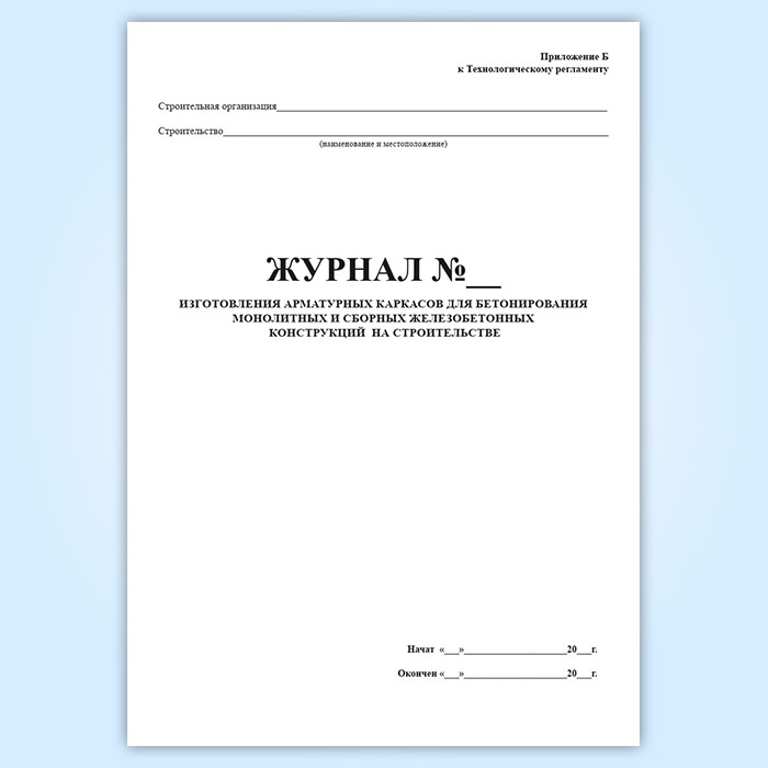 Журнал изготовления арматурных каркасов для бетонирования монолитных и сборных железобетонных конструкций на строительстве в Обнинске купить