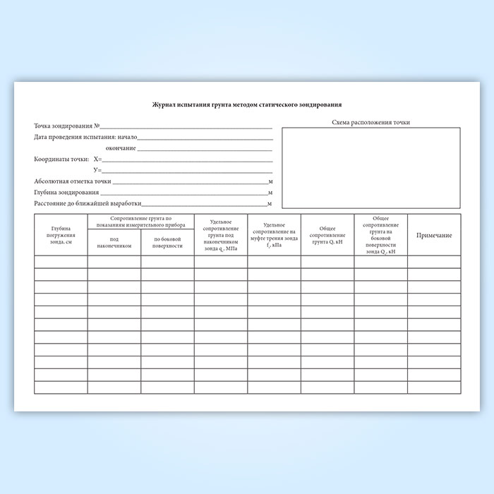 Журнал полевых испытаний грунтов статическим зондированием в Обнинске купить