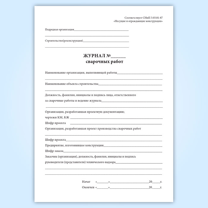 Журнал сварочных работ (СНиП 30301-87) в Обнинске купить