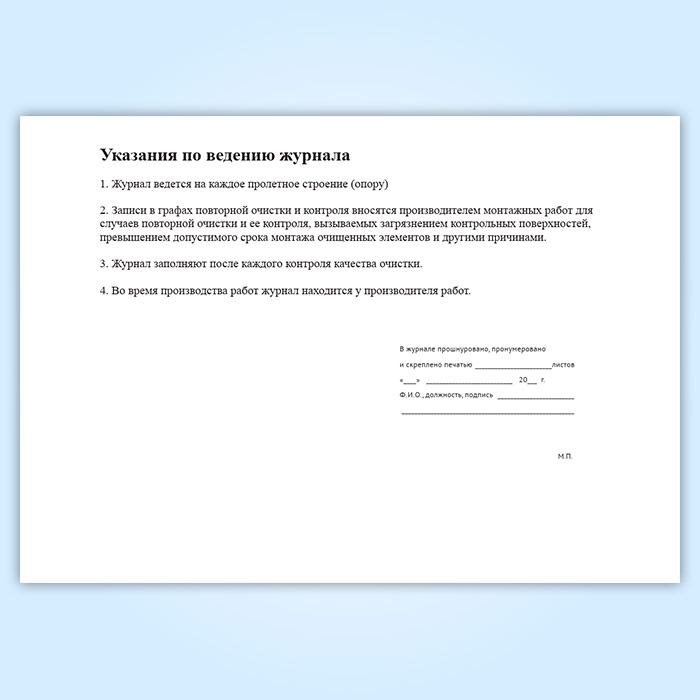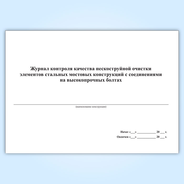 Журнал контроля качества пескоструйной очистки элементов стальных мостовых конструкций с соединениями на высокопрочных болтах в Обнинске купить