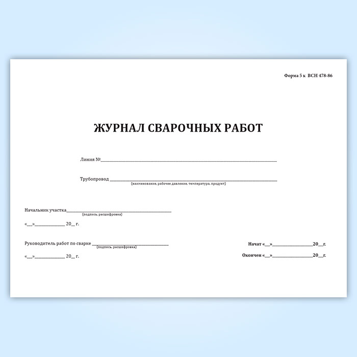 Журнал сварочных работ (ВСН 478-86) в Обнинске купить