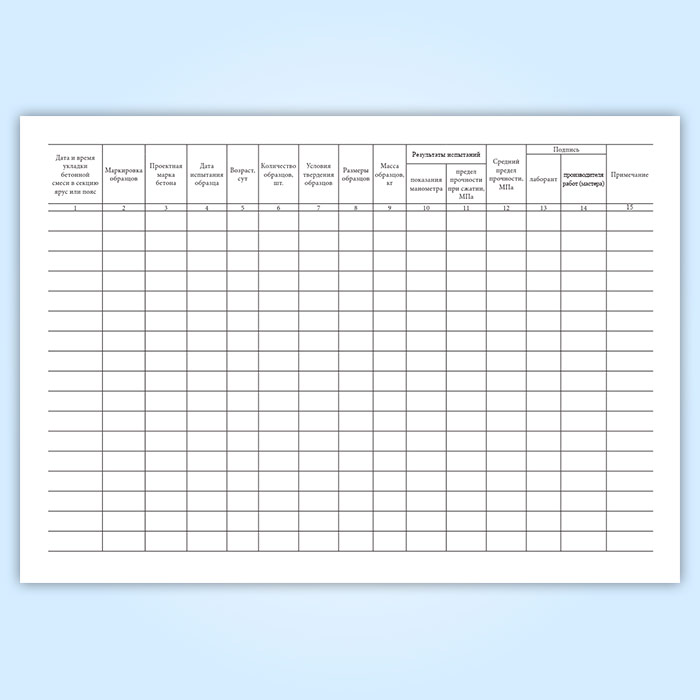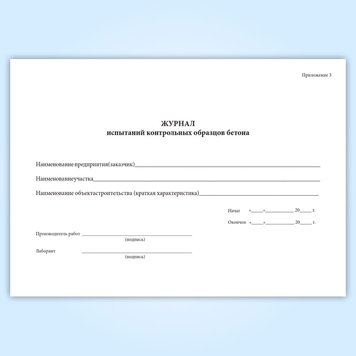 Журнал испытаний контрольных образцов бетона (ВСН 430-82) в Обнинске купить
