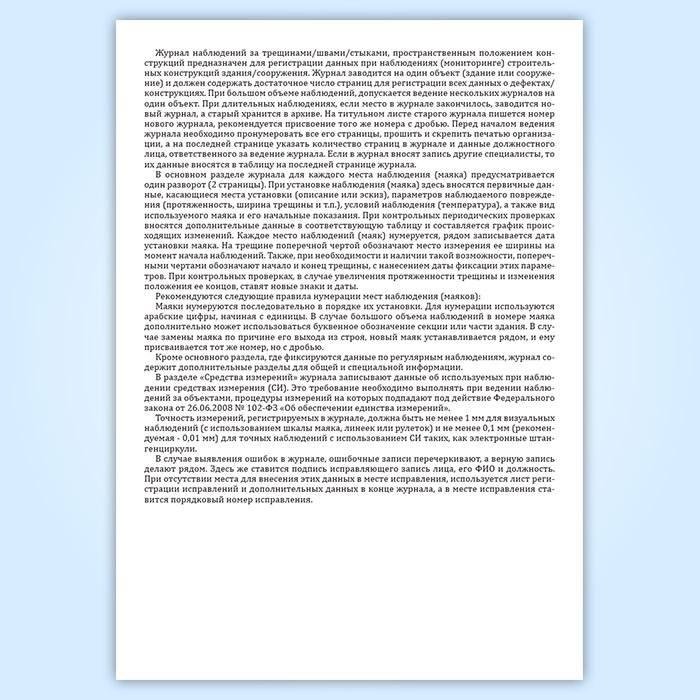 Журнал наблюдений за трещинами/швами/стыками, пространственным положением конструкций (для одного объекта) в Обнинске купить