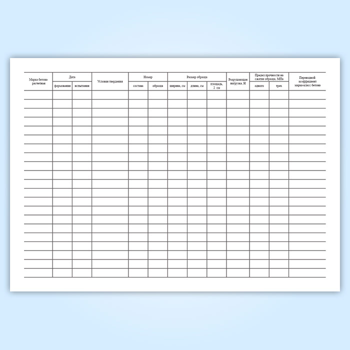 Журнал результатов по определению прочности бетона эталонным молотком Кашкарова в Обнинске купить