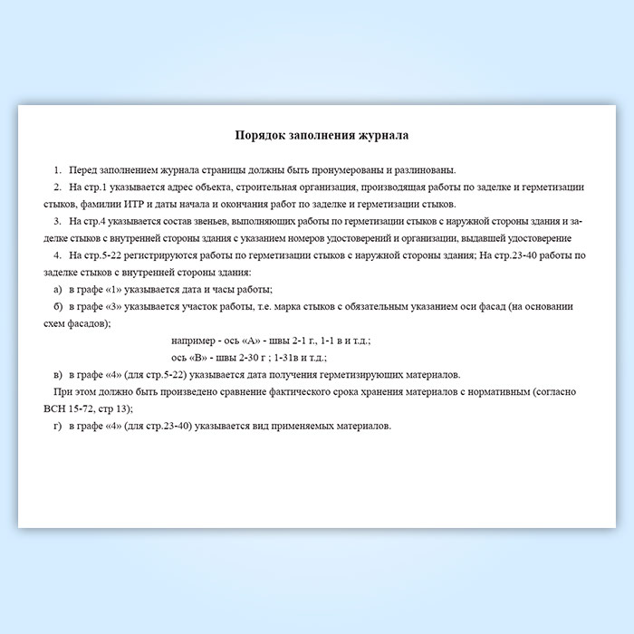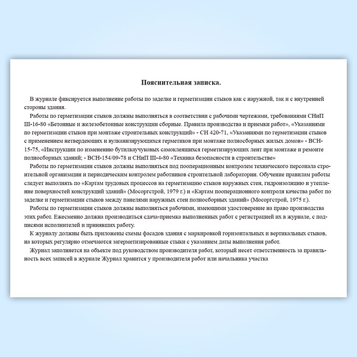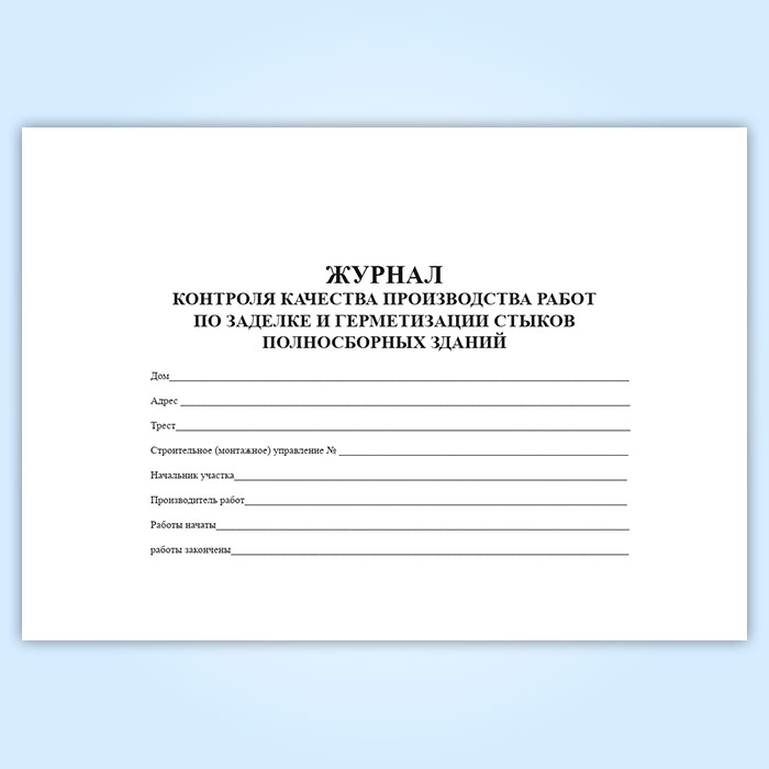 Журнал контроля качества производства работ по заделке и герметизации стыков полносборных зданий в Обнинске купить