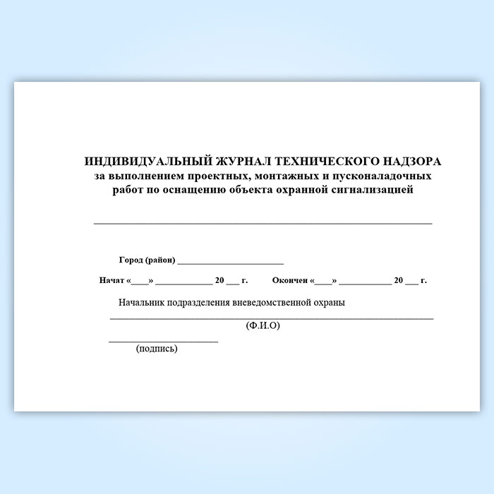 Индивидуальный журнал технического надзора за выполнением проектных, монтажных и пусконаладочных работ по оснащению объекта охранной сигнализацией в Обнинске купить