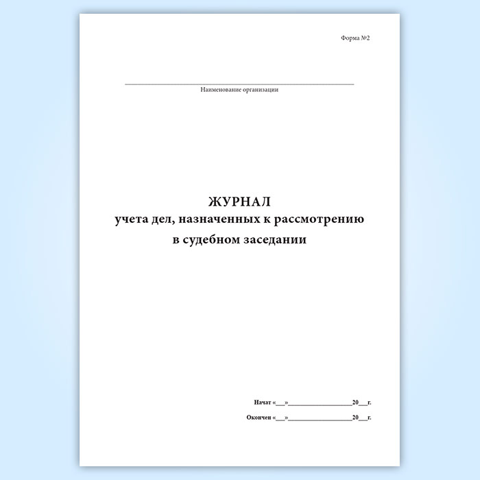 Журнал учета дел, назначенных к рассмотрению в судебном заседании (форма № 2) в Обнинске купить