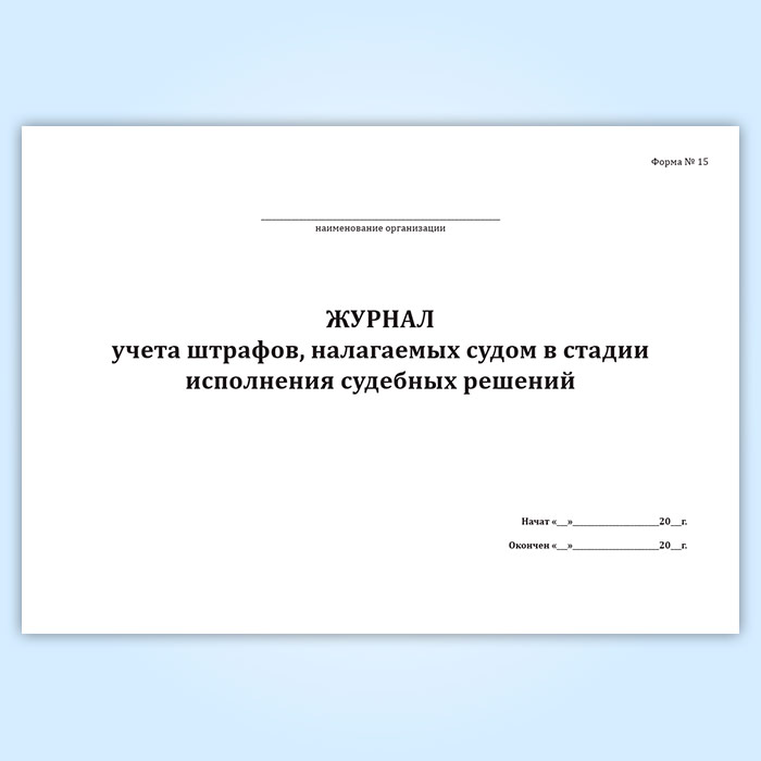 Журнал учета штрафов, налагаемых судом в стадии исполнения судебных решений (форма № 15) в Обнинске купить