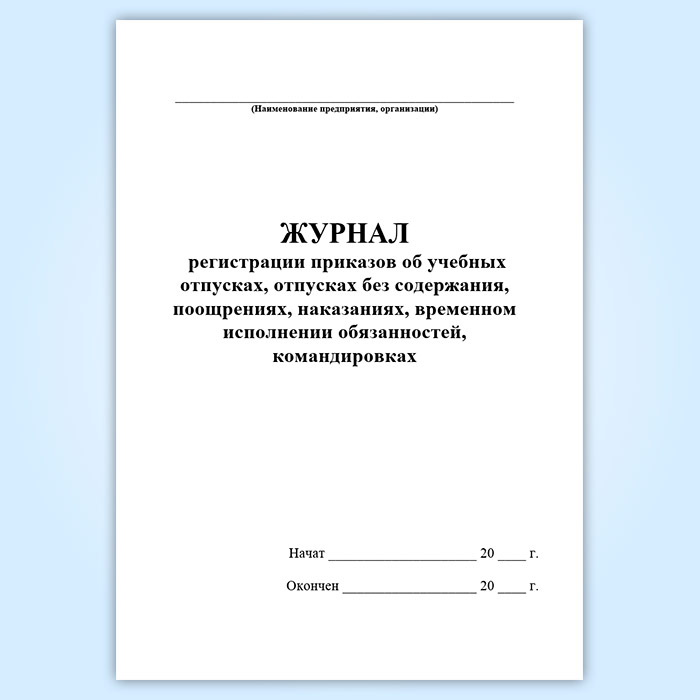Журнал регистрации приказов об учебных отпусках, отпусках без содержания, поощрениях, наказаниях, временном исполнении обязанностей, командировках в Обнинске купить