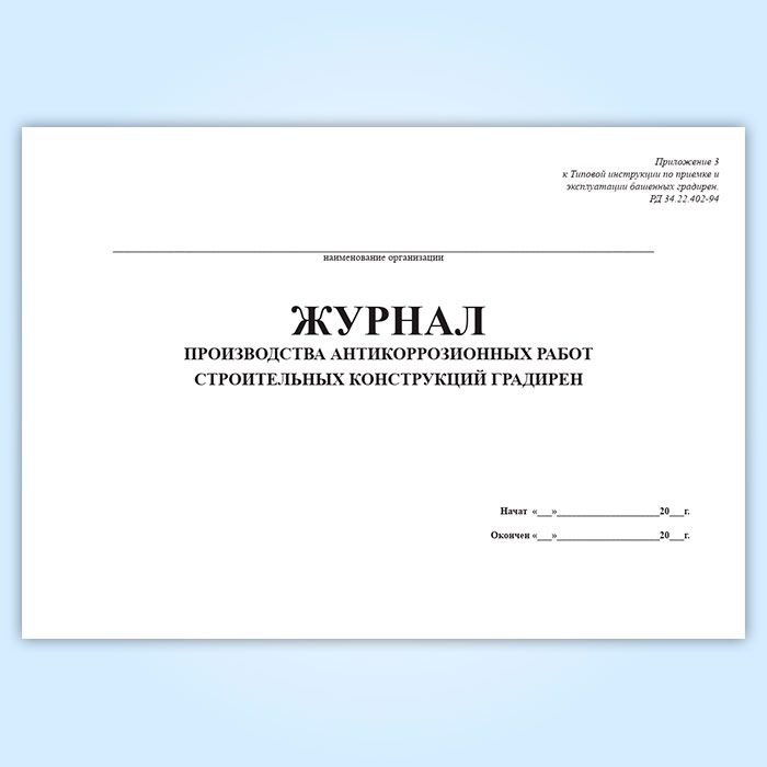 Журнал производства антикоррозионных работ строительных конструкций градирен в Обнинске купить