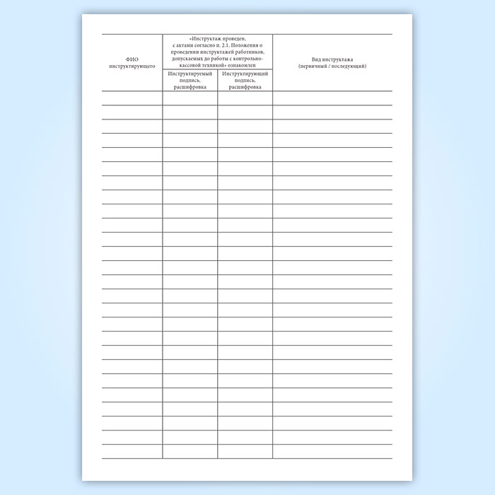 Журнал учета проведения инструктажей работников, допускаемых до работы с контрольно-кассовой техникой в Обнинске купить