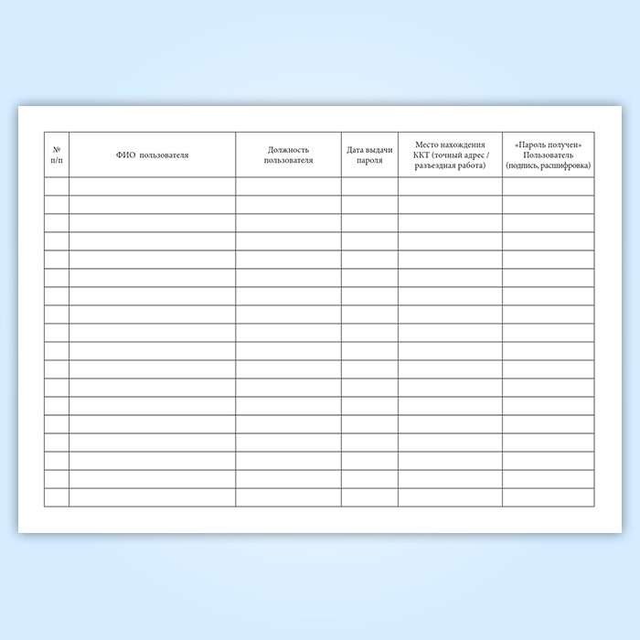 Журнал выдачи паролей для работы с контрольно-кассовой техникой (ККТ) в Обнинске купить