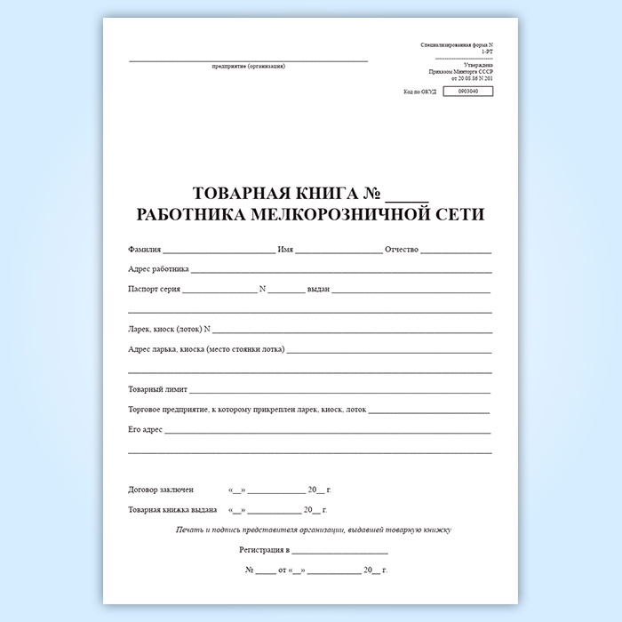 Товарная книга работника мелкорозничной сети. Специализированная (форма № 1-РТ) в Обнинске купить