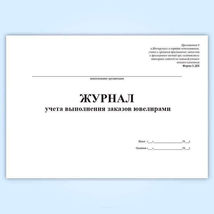 Журнал учета выполнения заказов ювелирами (форма 2-ДМ) в Обнинске купить