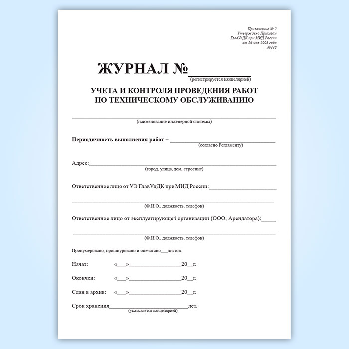 Журнал учета и контроля проведения работ по техническому обслуживанию в Обнинске купить