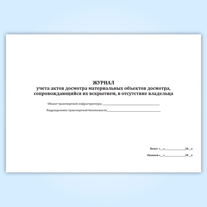 Журнал учета актов досмотра материальных объектов досмотра, сопровождающийся их вскрытием, в отсутствие владельца в Обнинске купить