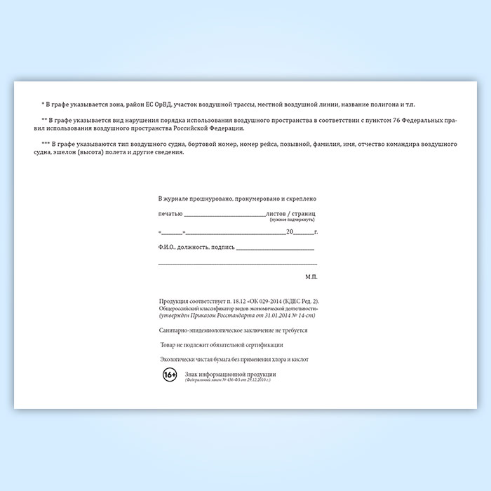 Журнал учета нарушений порядка использования воздушного пространства в Обнинске купить