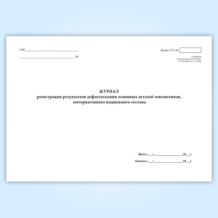 Журнал регистрации результатов дефектоскопии основных деталей локомотивов, моторвагонного подвижного состава (форма ТУ-138) в Обнинске купить