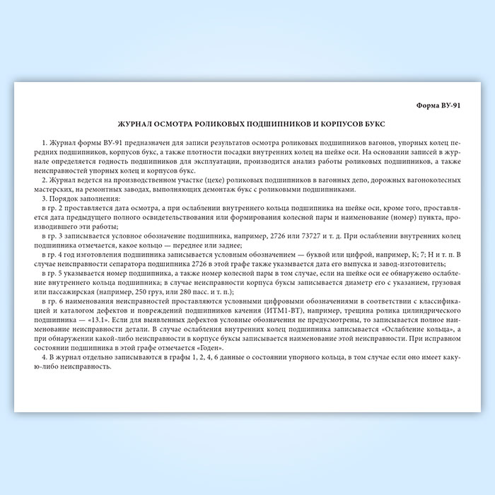 Журнал осмотра роликовых подшипников и корпусов букс (форма ВУ-91) в Обнинске купить