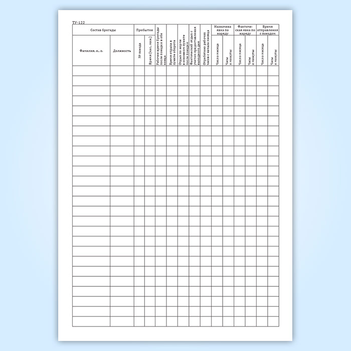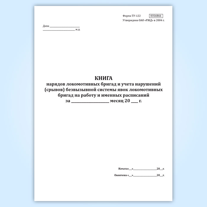 Книга нарядов локомотивных бригад и учета нарушений (срывов) безвызывной системы явок локомотивных бригад на работу и именных расписаний (форма ТУ-122) в Обнинске купить