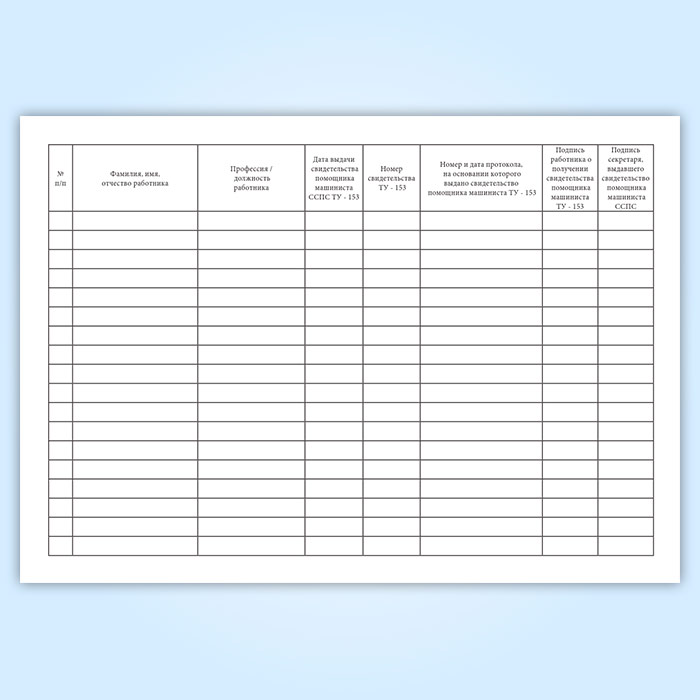 Журнал выдачи и регистрации удостоверений помощника машиниста ССПС (форма ТУ-153) в Обнинске купить