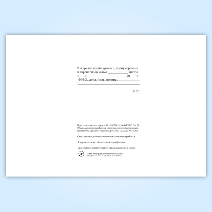 Вы получаете печатную продукцию прошнурованной и c местом для вашей печати в соответствии с действующими нормативными документами:
