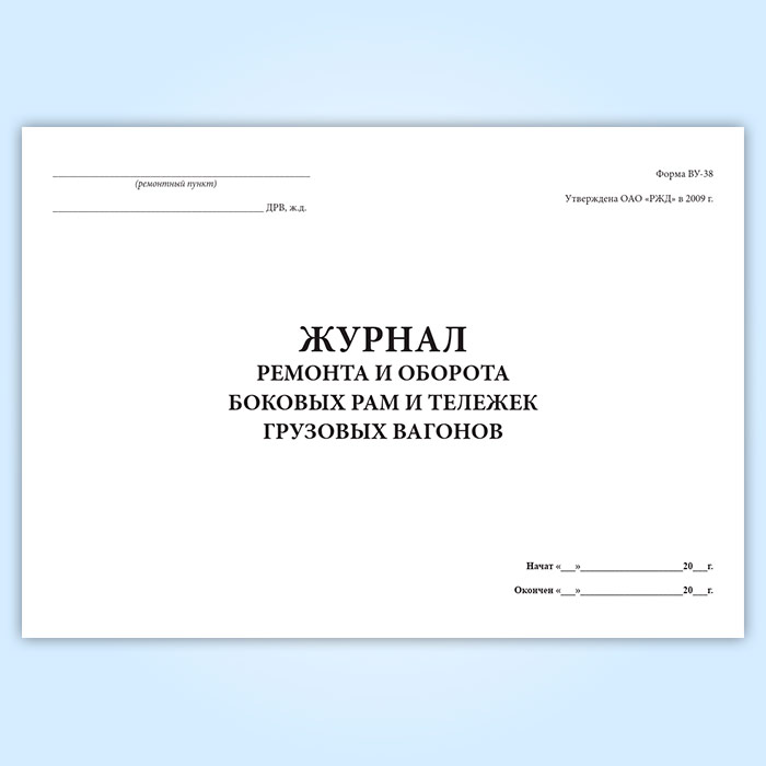 Журнал ремонта и оборота боковых рам и тележек грузовых вагонов (форма ВУ-38) в Обнинске купить