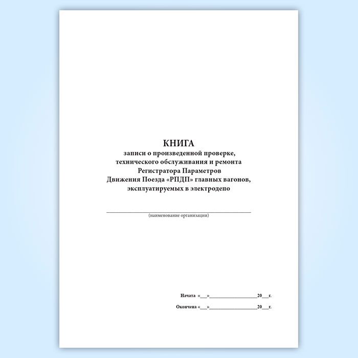 Книга записи о произведенной проверке, технического обслуживания и ремонта Регистратора Параметров Движения Поезда «РПДП» главных вагонов, эксплуатируемых в электродепо в Обнинске купить