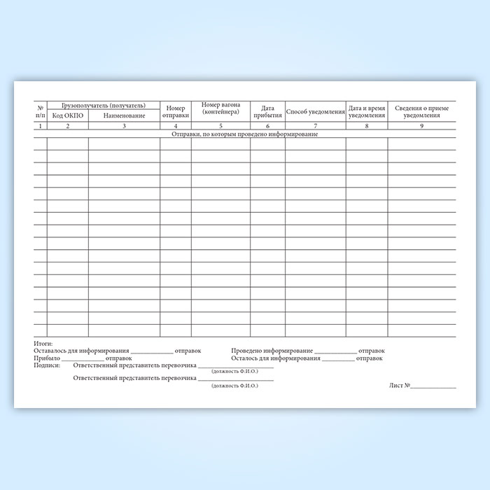 Книга уведомления о прибытии груза, порожнего грузового вагона (форма ГУ-6ВЦ/Э) в Обнинске купить