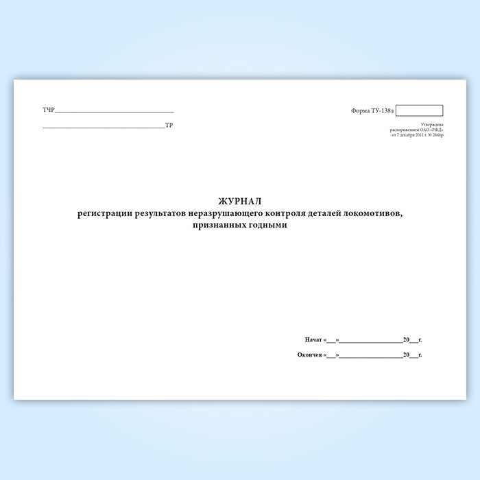 Журнал регистрации результатов неразрушающего контроля деталей локомотивов, признанных годными (форма ТУ-138л) в Обнинске купить