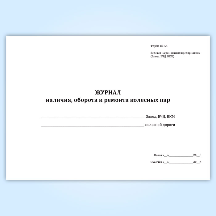 Журнал учета наличия, оборота и ремонта колесных пар (форма ВУ-54) в Обнинске купить