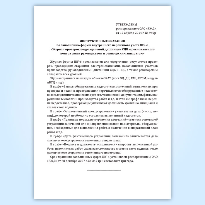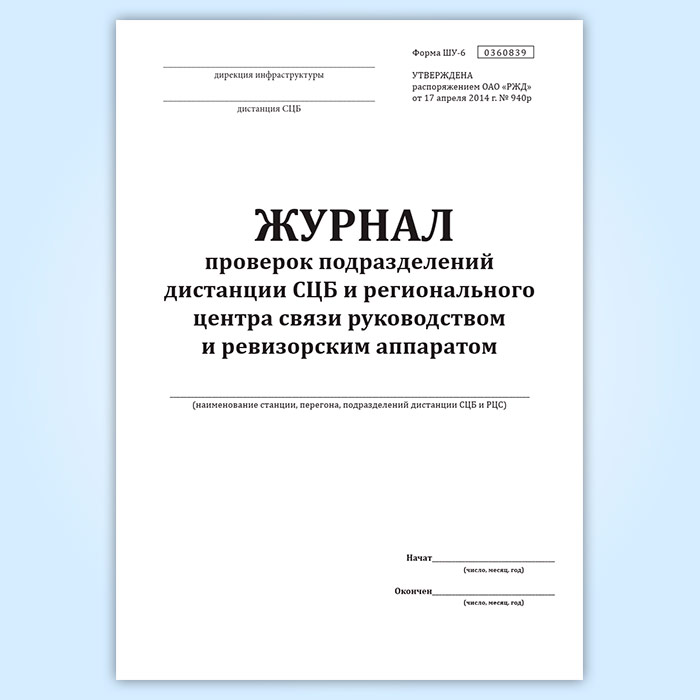 Журнал проверок подразделений дистанции СЦБ и регионального центра связи руководством и ревизорским аппаратом (форма ШУ-6) в Обнинске купить
