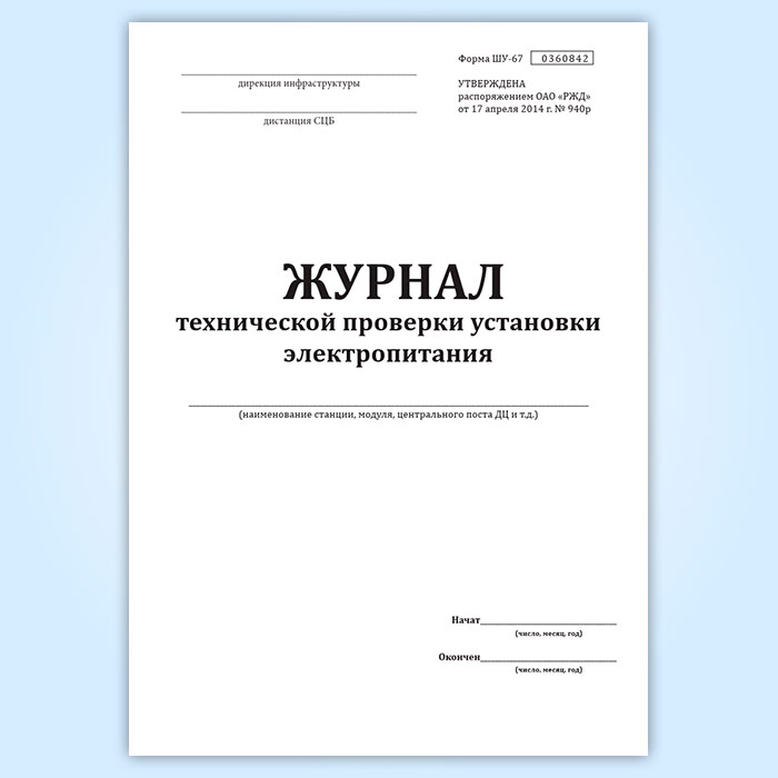 Журнал технической проверки установки электропитания (форма ШУ-67) в Обнинске купить