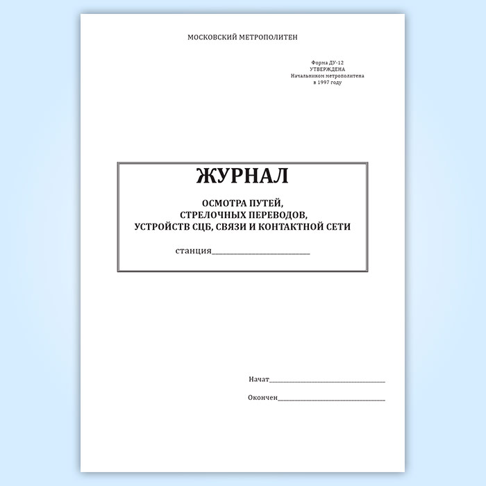 Журнал осмотра путей, стрелочных переводов, устройств СЦБ, связи и контактной сети (форма ДУ-12) в Обнинске купить