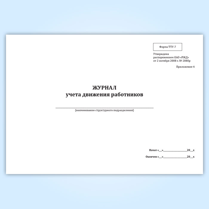 Журнал учета движения работников (форма ТТУ-7) в Обнинске купить
