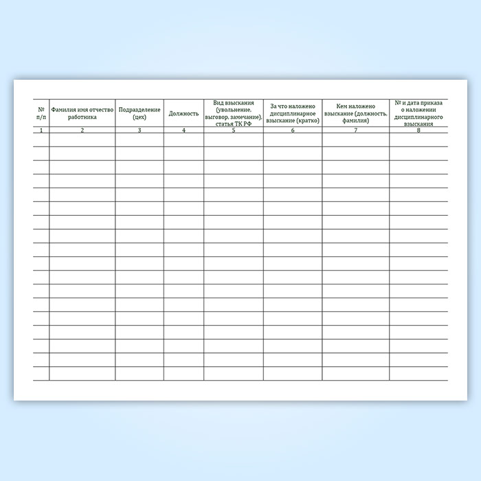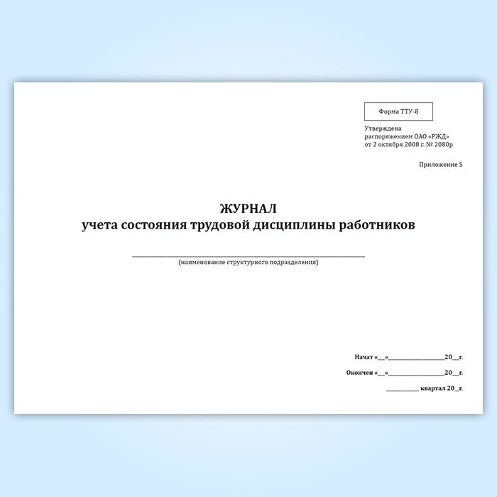 Журнал учета состояния трудовой дисциплины работников (форма ТТУ-8) в Обнинске купить